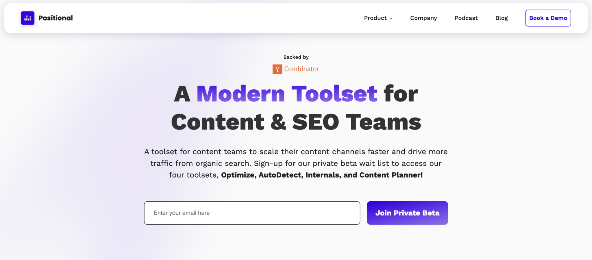 Positional is a toolset for content teams to scale their content channels faster and drive more traffic from organic search. Positional uses a data-driven approach to create fantastic content that actually ranks.